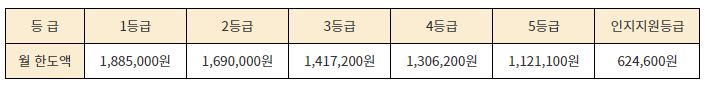 1등급은 1,885,000원이며 장기요양 5등급은 1,121,1000원입니다.