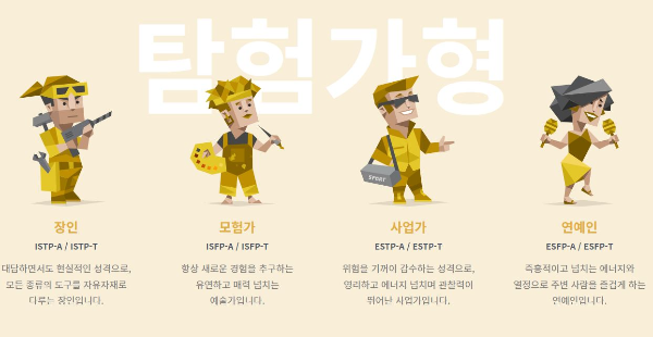 탐험가형 : ISTP / ISFP / ESTP / ESFP